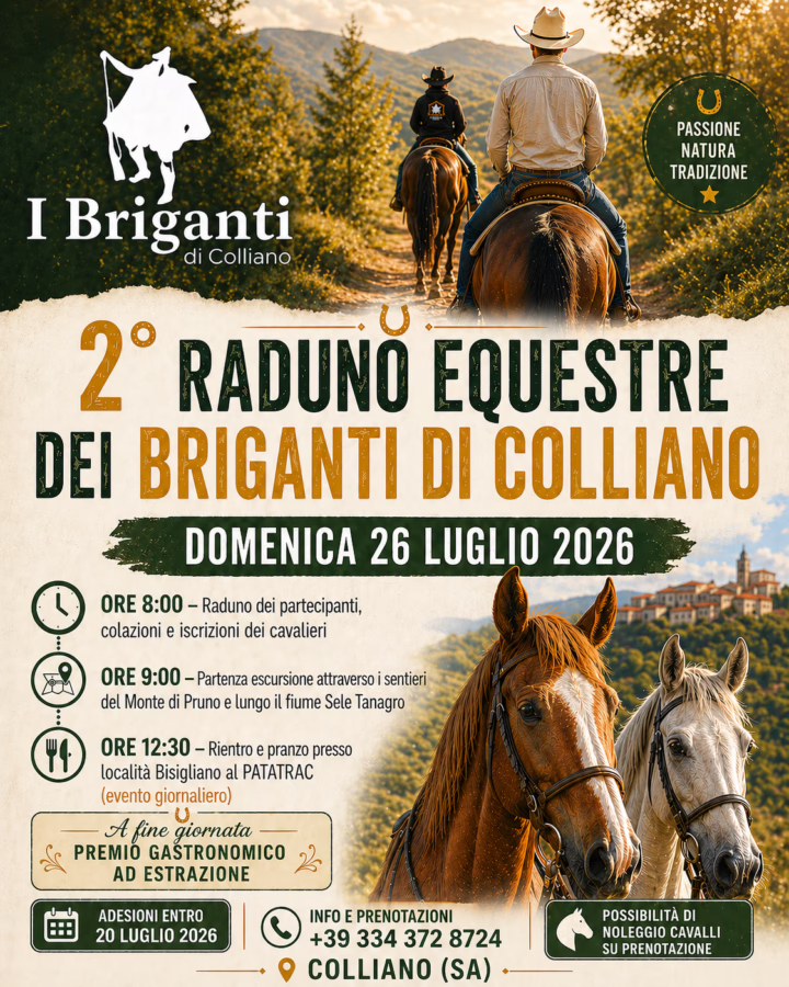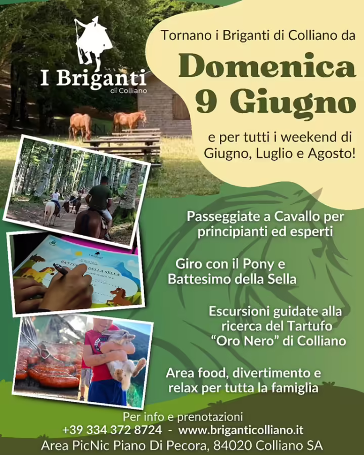 L’Associazione I Briganti di Colliano vi porta alla scoperta della Valle del Sele con esperienze uniche: sentieri mozzafiato, avventure a cavallo, delizie gastronomiche e giochi per i più piccoli.